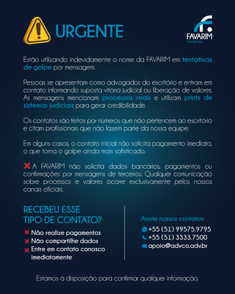 Entendemos que tais pilares são essenciais e refletem diretamente na qualidade do trabalho. Assim, cumprimos nossa missão de prestar serviços jurídicos com eficiência e segurança, seja no âmbito judicial, seja no extrajudicial, com foco na entrega do melhor resultado ao cliente.